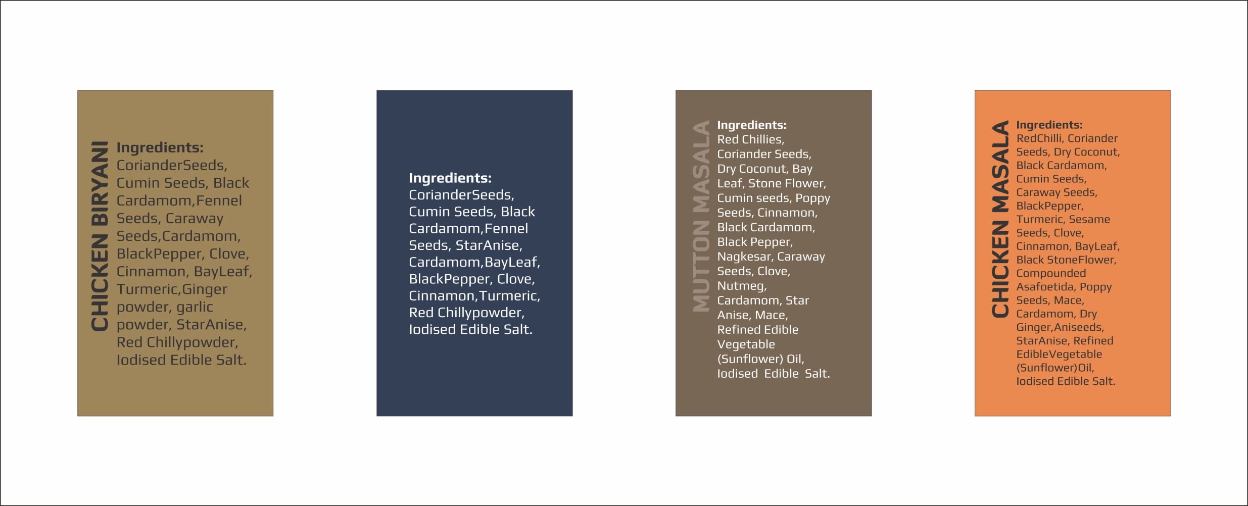 1 pack each of Chicken Biryani Masala Mutton Biryani Masala Chicken Masala and Mutton Masala 50g each