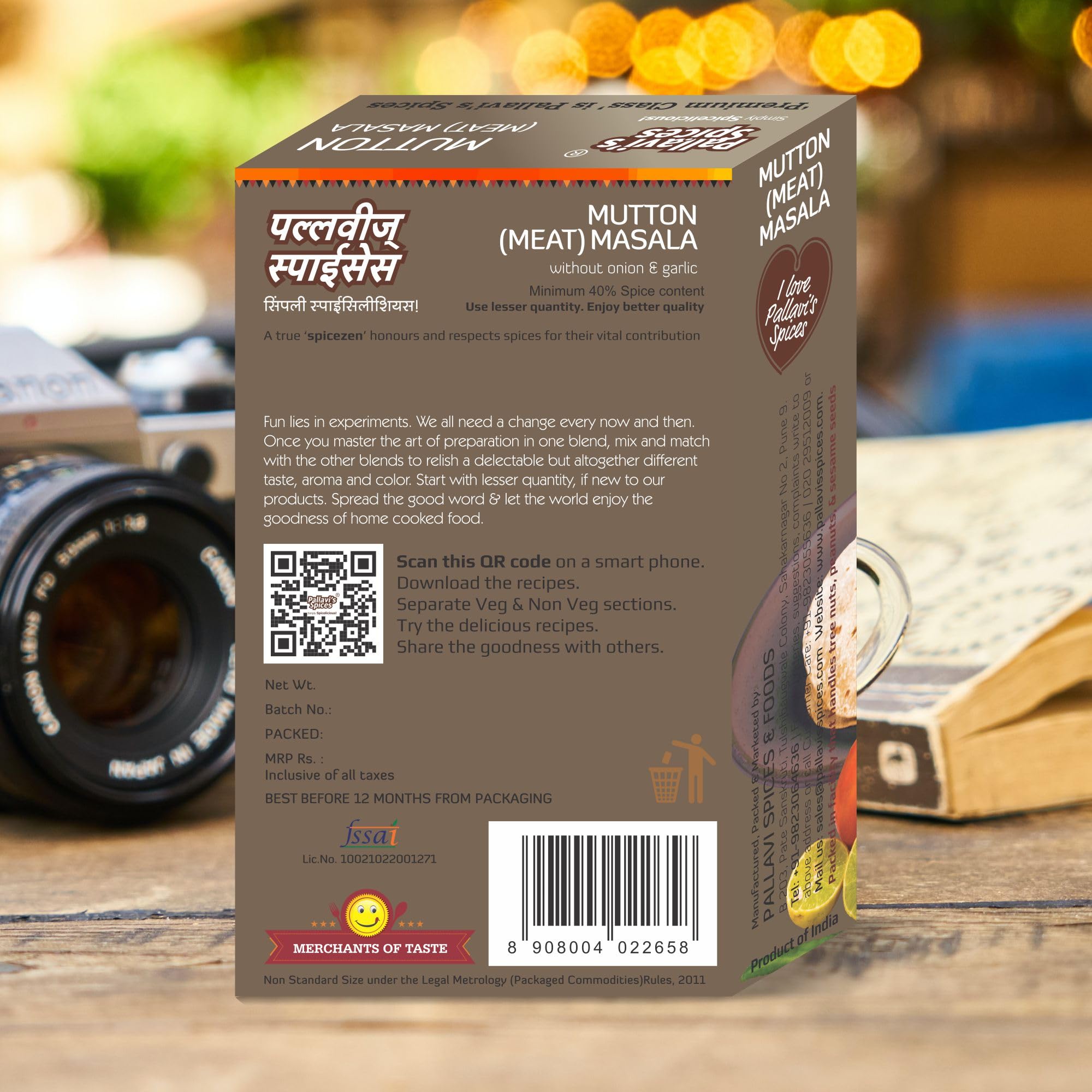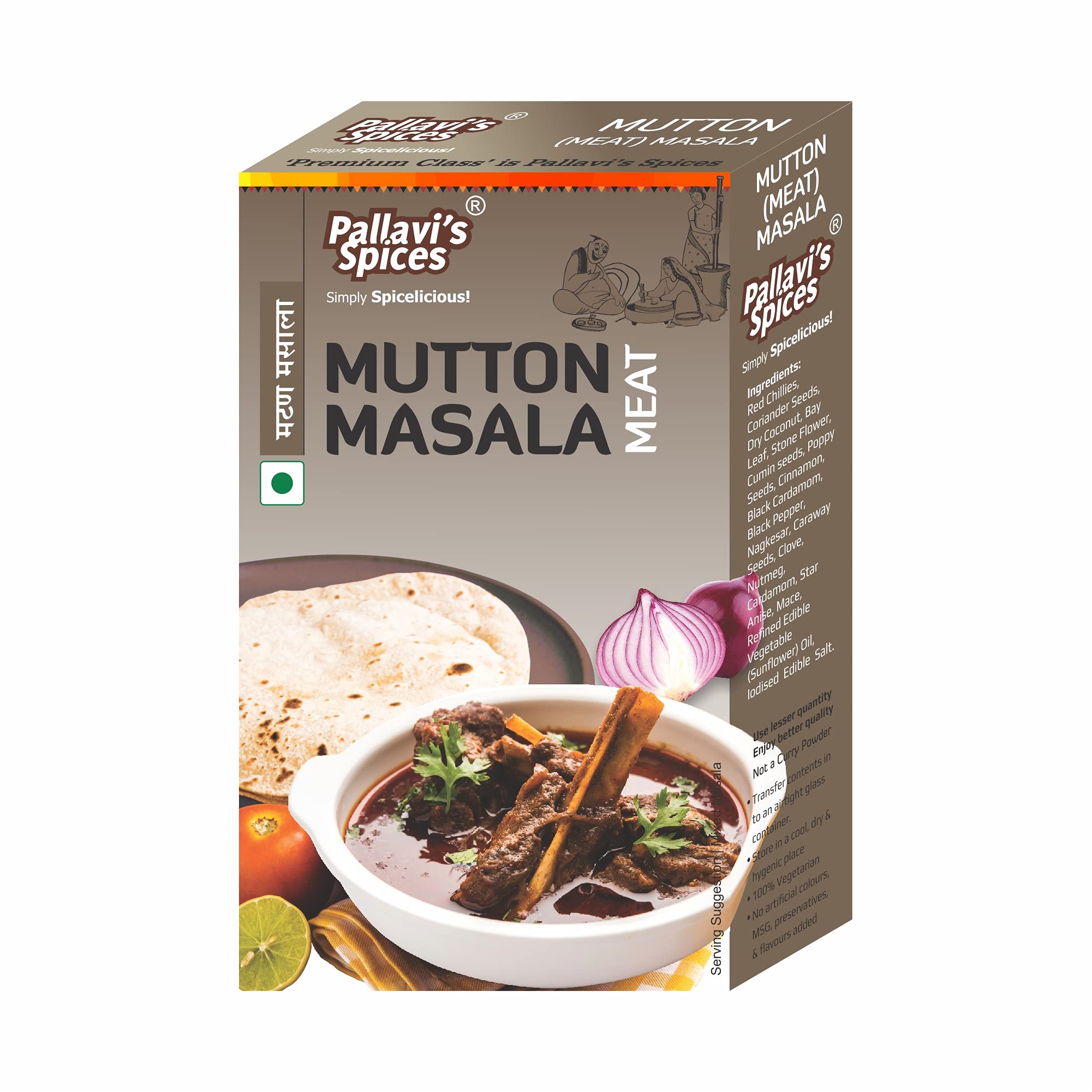 HomeGrocerySpicesInstant SpicesNon Veg MasalaPallavi's Spices Mutton Masala | Meat Masala | Aromatic Flavourful Mutton Handi Masala/Powder | 5 x 10g sachets in every pack | 50g (Pack of 4)
