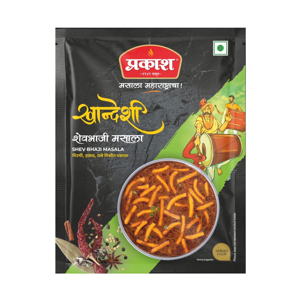 The Khandeshi Shev Bhaji is a treat for all foodie souls in Maharashtra and beyond. It is a flavorful curry made with spicy and crispy Shev served with Chapati/Bhakri. Just rustle up a delicious Shev Bhaji with the Prakash Khandeshi Shev Bhaji Masala and let the food do the talking with our happy bellies. Accompany it with Taak to achieve the best experience of your meal.
