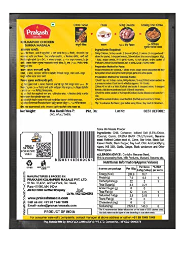Prakash Kolhapuri Chicken Sukka Masala 25 gram | Pack of 4 | Ready to Use Kolhapuri Chicken Sukka Masala | Easy to cook | Authentic Maharashtra Spices | Serves 4 (Per Pack) | No Preservatives Colours or Artificial Flavours