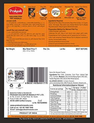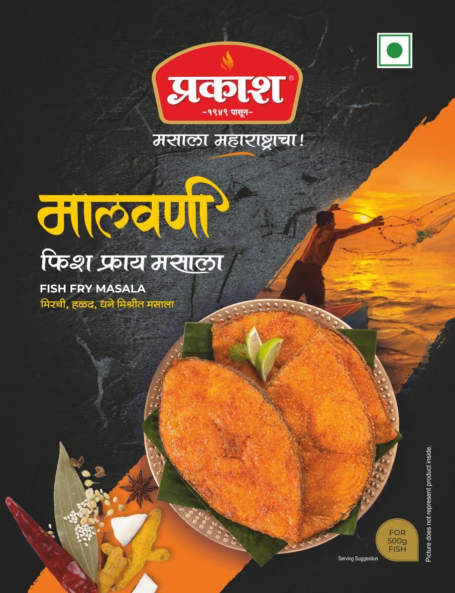 Prakash Malwani Fish Fry Masala | Pack of 4 | Ready to Use Malwani Fish Fry Masala | Easy to cook | Authentic Maharashtra Spices | Serves 4 (Per Pack) | No Preservatives Colours or Artificial Flavours