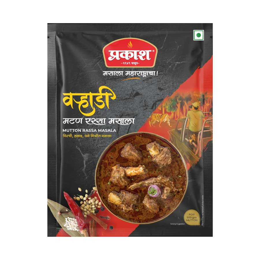 Prakash Varhadi Mutton Rassa Masala 25 gram | Pack of 4 | Ready to Use | Easy to cook | Authentic Maharashtra Spices | Serves 4 (Per Pack) | No Preservatives Colours or Artificial Flavours