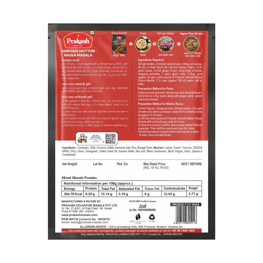 • Package Includes: Varhadi Mutton Rassa Masala 25 GM