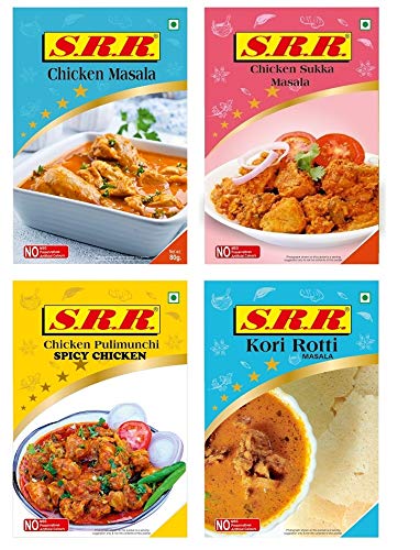 S.R.R Pack Of 4 Chicken Masala Kori Roti Pullimumchi And Chicken Sukka 80 Grams Each