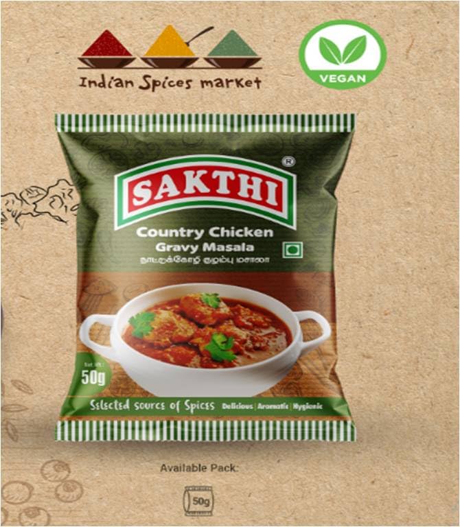 • Sakthi Masala is a popular brand known for its wide range of spice blends and masalas including their country chicken gravy masala. Here's some general information about Sakthi country chicken gravy masala: