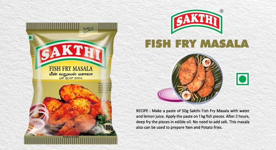 • Sakthi Fish Fry Masala is a spice blend specially formulated to prepare flavorful and aromatic fried fish. Here's what you should know about Sakthi Fish Fry Masala: