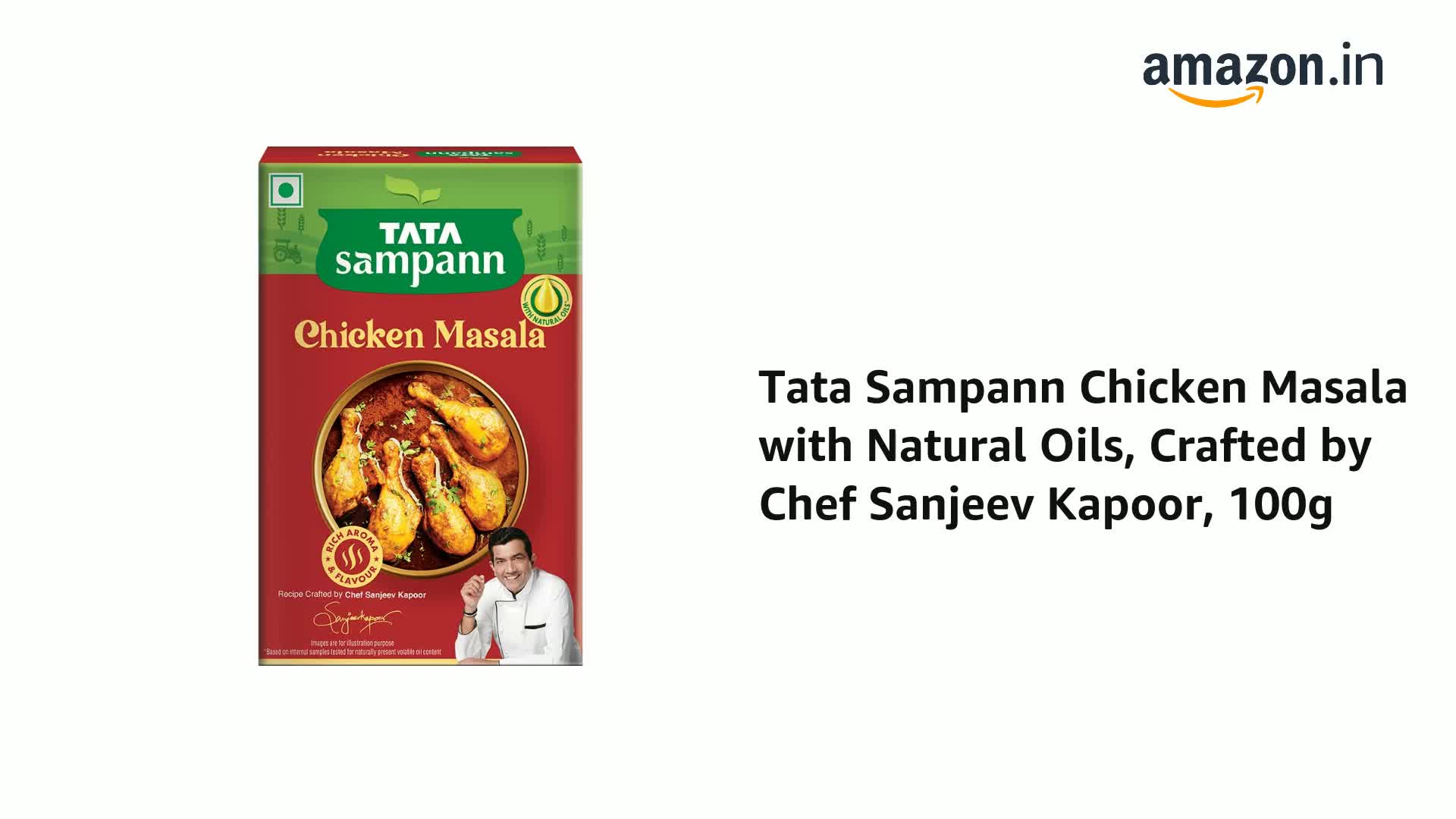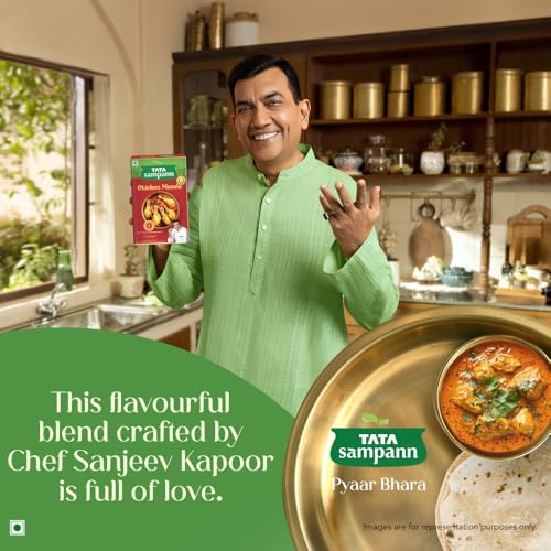 There is nothing like cooking your favourite dishes at home with the same taste and flavour that you get outside hence Tata Sampann brings you its range of blended spices to make all your dishes extra special! Introducing Tata Sampann Chicken Masala made from whole spices that retain their natural oils making every bite aromatic and full of flavour. This masala contains unique flavoured spices which adds an earthy flavour to the spice mix. Sourced from the best of farms the recipe contains naturally rich masalas and is specially crafted by Chef Sanjeev Kapoor. The chicken masala comes in an innovative 5-sachet packaging that locks in freshness for longer. Now make tasty chicken curry at home and watch everyone lick their plates clean! Keep in a cool and dry place. Do not purchase if pack is punctured or tampered with. Explore Tata Sampann Blended Spices Range â Pav Bhaji Masala Chicken Masala Paneer Masala Punjabi Chole Masala Dal Tadka Masala Meat Masala Kitchen King Masala and Garam Masala.