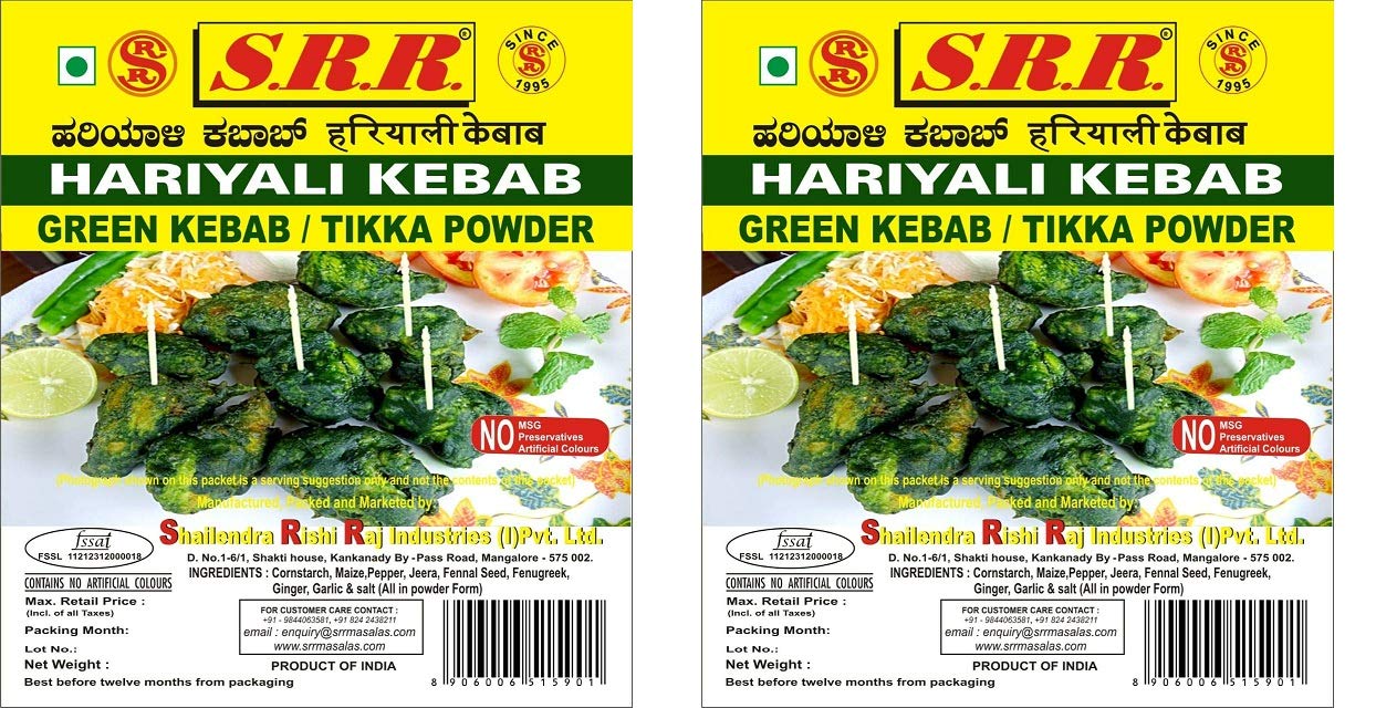 SRR Chicken Hariyali Kebab Chicken Green Kebab Masala Pack of 2 X 100 Grams No Artificial Colors