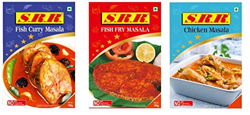 SRR Chicken Masala 75 gr and Fish Fry Masala and Fish Curry Masala 100 Grams All Natural No Artificial Flavors