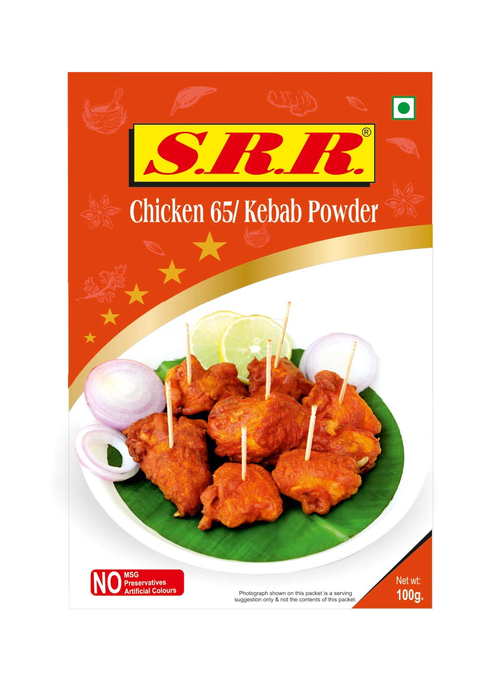 SRR Chicken Kebab/ 65 Masala Very easy to prepare and very tasty. Non SpicyAdults and children will love eating it. Contains No Artificial Colours Contains No Mono Sodium Glutamate (MSG)
