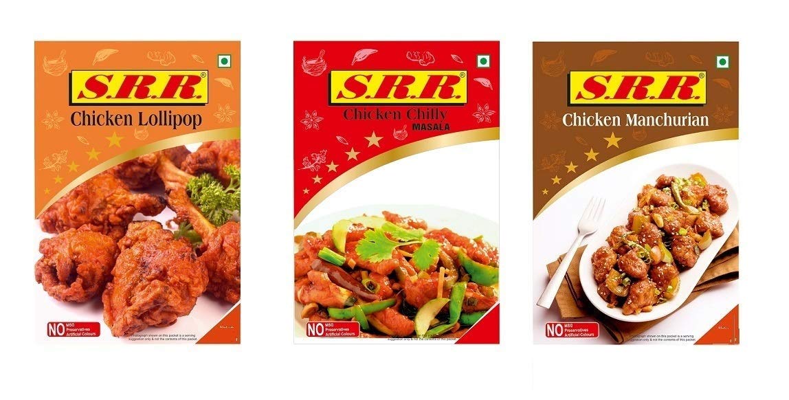 SRR Masala Chicken Lollipop Chilli Chicken Chicken Manchurian Masala Pack of 3 500 Grams Each XL Packs