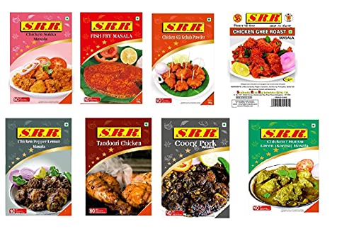 • SRR Chicken Sukka 80 GRAMS Fish Fry 100 GRAMS Kebab 65 100 GRAMS Chicken Ghee Roast 60 GRAMS Pepper Lemon Chicken 50 GRAMS Chicken Korma 50 GRAMS Tandoori Masala 75 GramS and Coorg Pork Masala 100 GRAMS