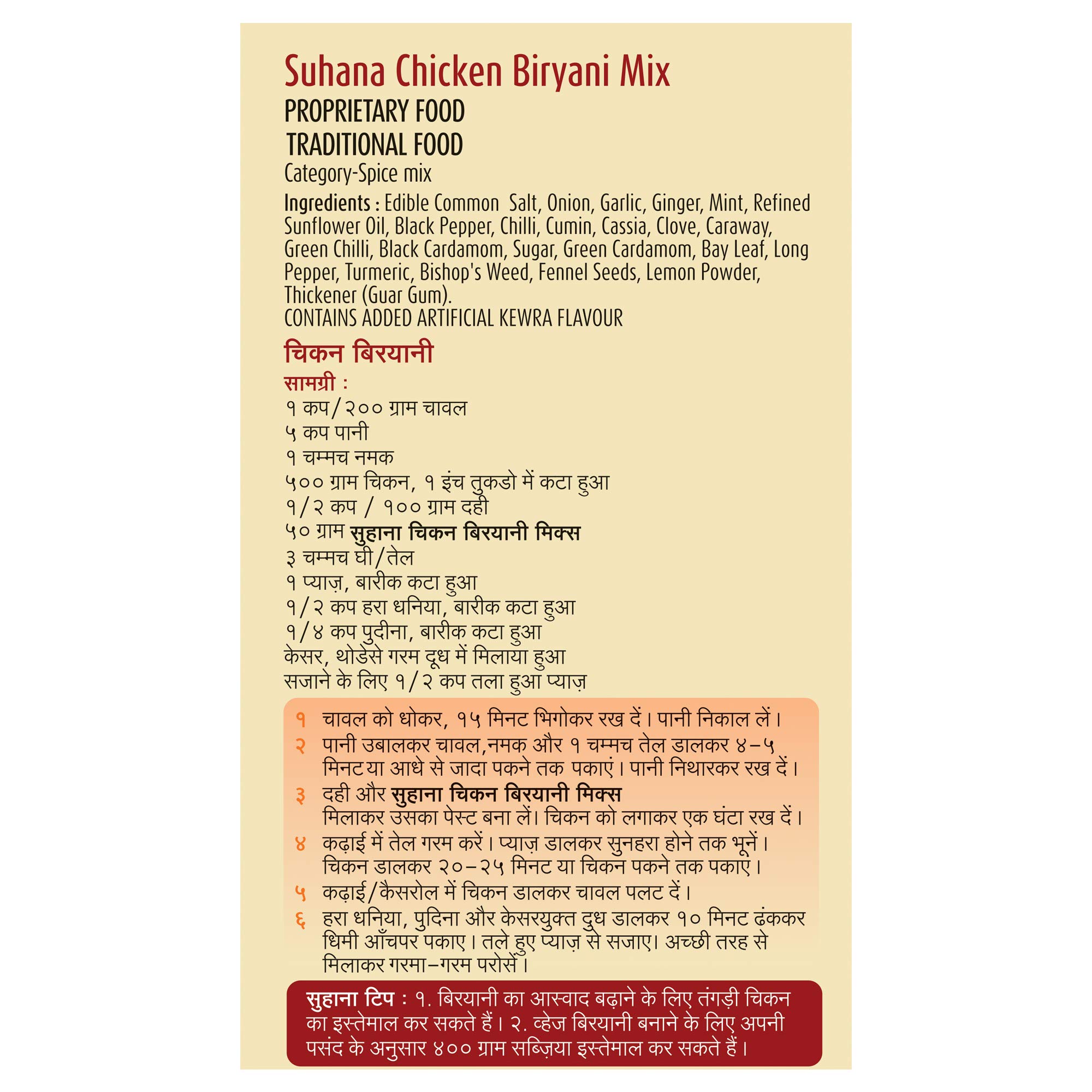 Suhana Chicken Biryani 50g Pouch | Easy to Cook | Spice Mix - Pack of 10