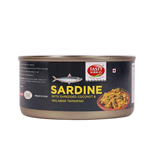 Discover a rare seafood delicacy from the coastal villages of South India with Tasty Nibbles Sardine with Shredded Coconut & Malabar Tamarind. This traditional recipe passed down through generations features mildly seasoned silvery sardines combined with pounded shredded coconut. Each bite offers the distinct flavour of sardines the rich texture of coconuts and the exotic blend of herbs and spices. Thanks to precise Japanese retort technology the sardine thorns become brittle and crunchy eliminating the need for careful picking. Indulge in this celebration of flavours and textures by ordering Tasty Nibbles Sardine with Shredded Coconut & Malabar Tamarind online. Explore the delectable taste and texture of this canned fish online perfect for fish lovers in India seeking authentic sardine fish. Order your Tasty Nibbles Sardine with Shredded Coconut & Malabar Tamarind today and experience the true essence of South Indian coastal cuisine. Processed using advanced Japanese retort technology. Ready-To-Eat. No added preservatives No refrigeration is required until opened. Guaranteed 18 months shelf life at room temperature. 100% convenience with zero wastage. HACCP Halal certified and FSSAI approved.