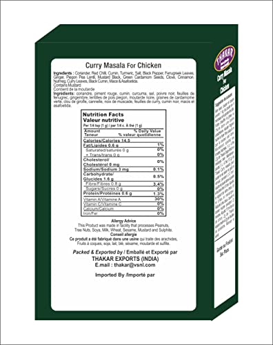 Thakar Curry Masala for Chicken enhances the flavor of chicken dishes with a combination of aromatic herbs and spices. Taste the real essence of Indian food with this genuine and flexible flavor mix. The user-friendly packaging makes Thakar Curry Masala for Chicken suitable for home and professional chefs. By marinating this exquisite spice mix on the chicken you can impart delicious flavors. Even the most discriminating palates will be impressed by this delectable dish. Try it out!
