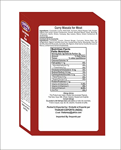 A spicy and fragrant curry masala for meat Thakar Curry Masala for Meat is a great choice. A fantastic spice mix to enhance the flavors of meat dishes primarily designed for meat lovers. This spice blend's flavor sets you free. Spices in this Curry Masala for Meat complement the herbal flavor of birds lamb and beef. Boost the flavor of your meat dishes with Thakar Curry Masala.