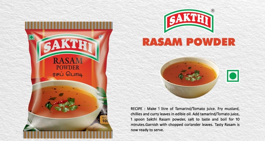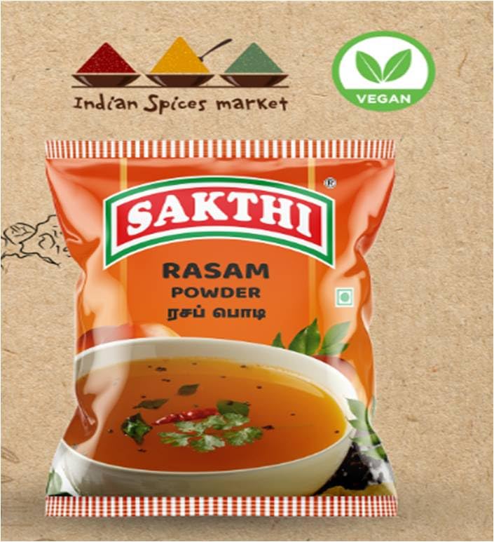 • Sakthi Rasam Powder is a spice mix specifically designed to prepare Rasam a traditional South Indian soup-like dish known for its tangy and spicy flavors. Here's a detailed overview of Sakthi Rasam Powder: