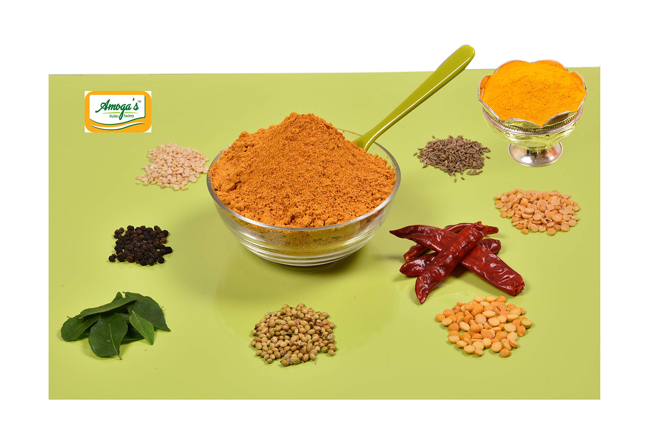 Sambar Podi from Andhra has an authentic flavorthe preparation of sambar is so easy and Tasty with Amoga's Pickles Factory Sambar Powder.We use all rich ingredients The Aroma was kept air tight.Adding Vegetables and Desi ghee gives you a nice mouth watering taste which can be enjoyed with Idli Vada Dosa & Hot Hot Rice.