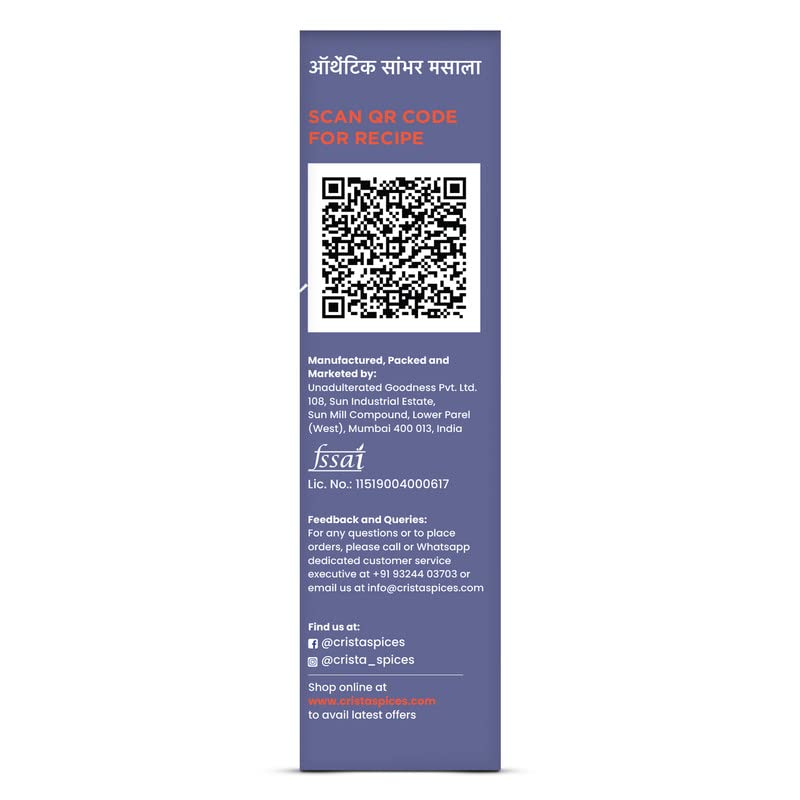 CRISTA Authentic Sambhar Masala for Dosa & Idli | Mixed Spices Blend | South Indian Cuisines | Zero added Colours Fillers Additives & Preservatives | 100 gms
