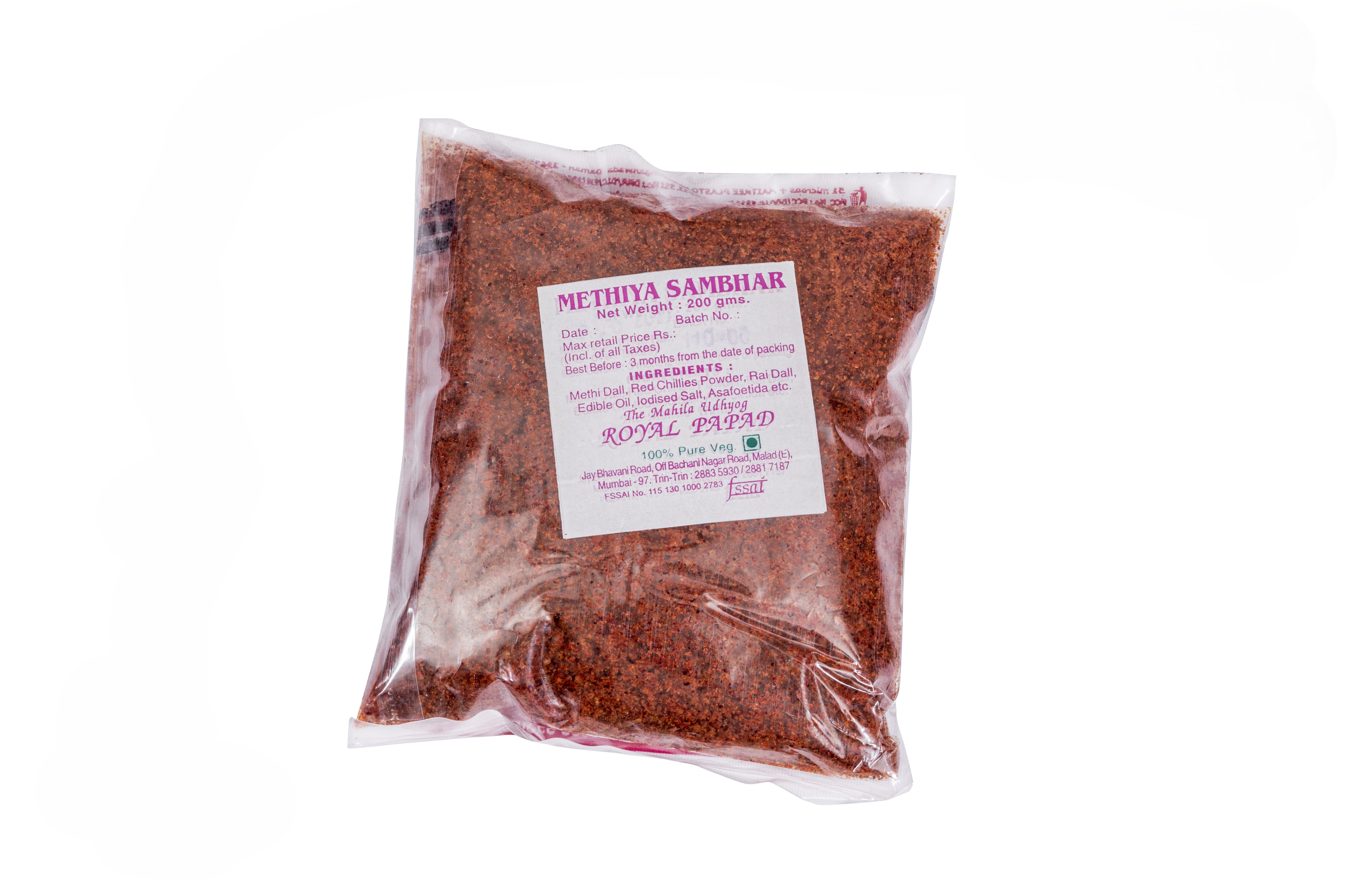 METHIYA SAMBHAR MASALA IS A BLEND OF BEST QUALITY OF SPICES WHICH CAN BE USED FOR MAKING PICKLES AND OTHER DISHES
