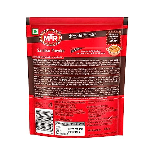 MTR Sambar Powder | Traditional Masalas | Authentic Recipe | 200g