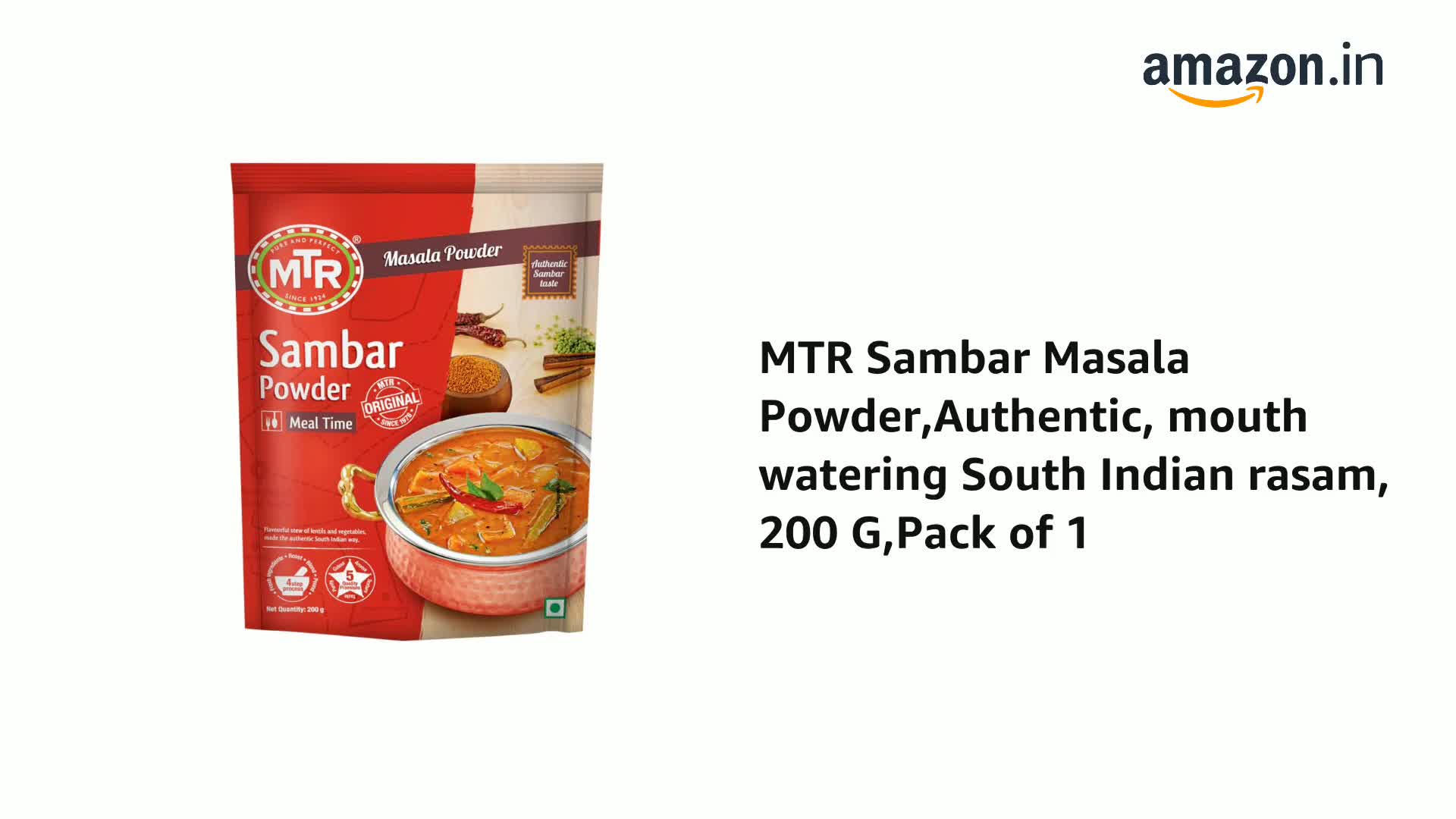 Savour the traditional method of home made sambar with MTR foods signature recipe made the authentic South Indian way. Using authentic Indian recipes of the purest and best quality natural ingredients. We bring you a range of delicious products with flavour and taste to delight your family at every meal and every occasion.
