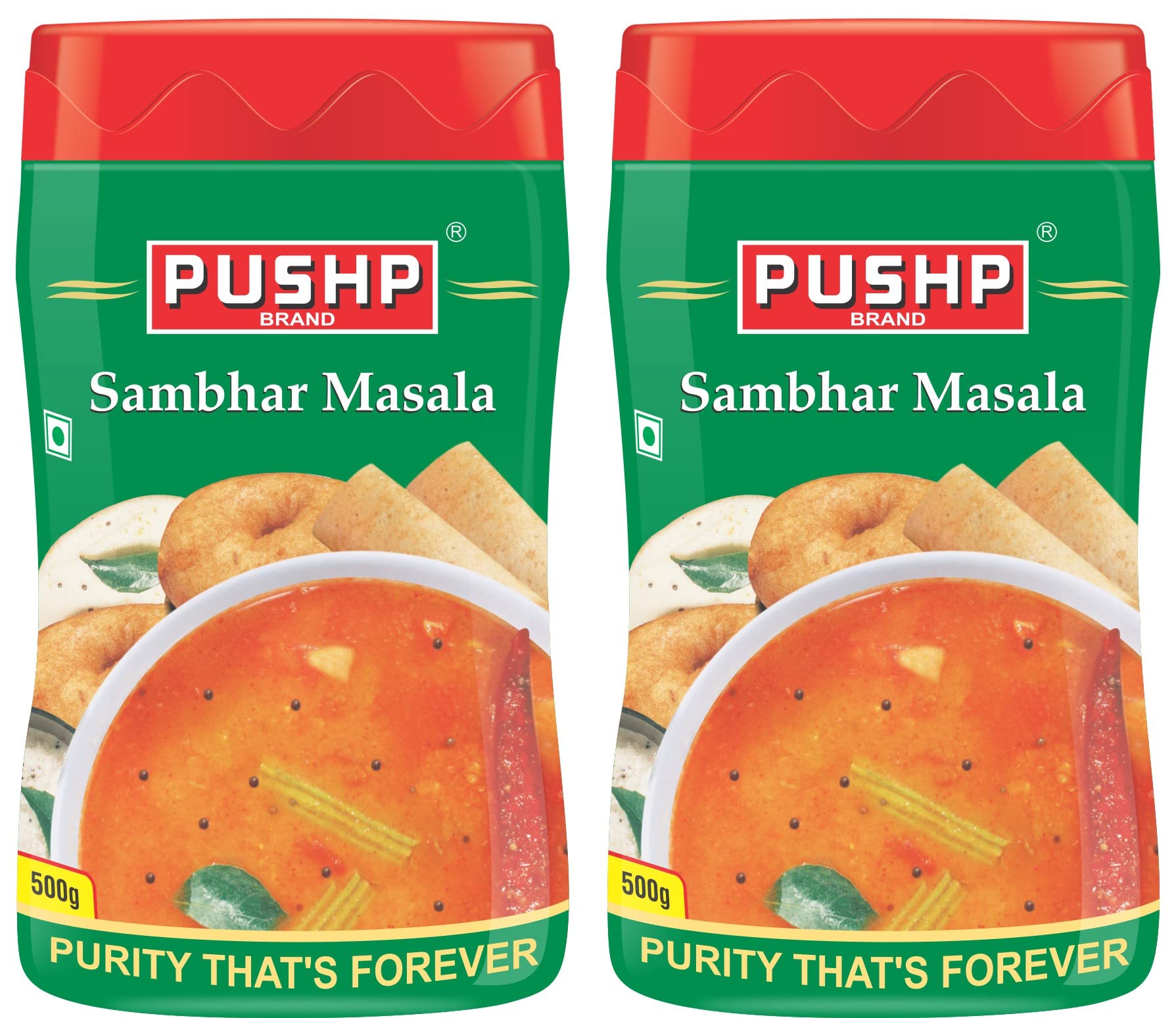 Pushp Brand Sambhar Masala 500g Jar Package (Pack of 2)