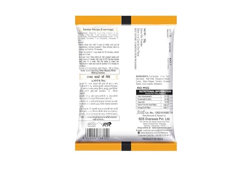 SECURE PACKAGING FOR FRESHNESS: We understand the importance of preserving freshness. Our Sambar Masala is conveniently packaged in a 50g packet meticulously sealed to retain its flavor and aroma. It's always ready to elevate your culinary creations.