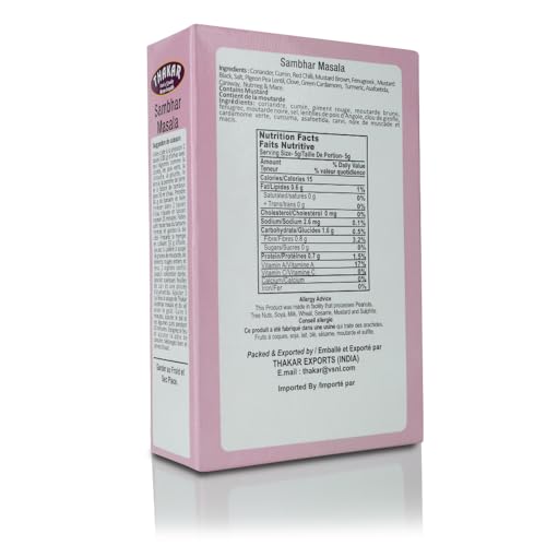 The Thakar Sambhar Masala boosts the flavor and aroma of your sambhar to new heights. Use this Masala to turn ordinary sambhar into a culinary masterpiece. In addition to sambhar Thakar Sambhar Masala enhances the flavors of other South Indian dishes. Make sambar vada idli or any flavorful vegetable curry with this masala. Hence pick up a 100 grams pack of Thakar Sambhar Masala and enjoy a culinary journey that will delight you.