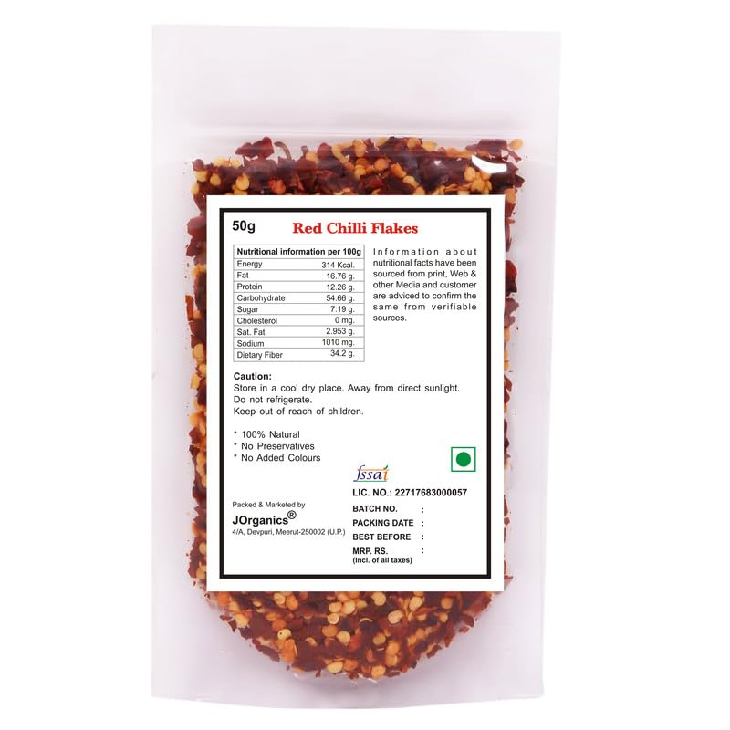 JOrganics Red Chilli Flakes Dry Red Chilli Flakes Seasonings Aromatic Spicy Dried Pizza Pasta Seasoning Pack Of 50 Grams