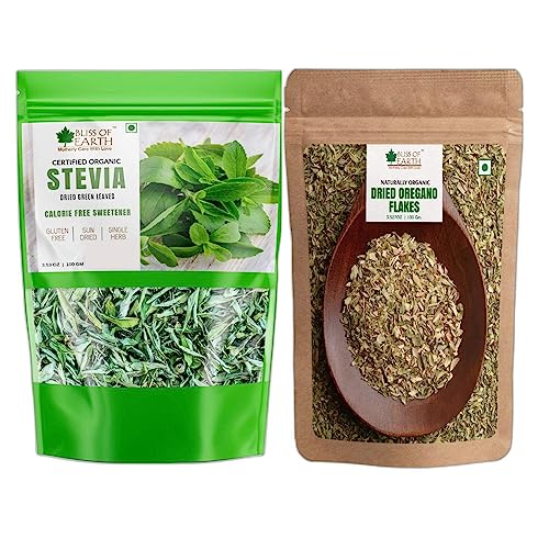 Bliss of Earth Organic100gm Stevia Leaves Dried Natural & Sgarfree Leaves & 100gm Oregano Flakes for Seasoning Pizza & Pasta