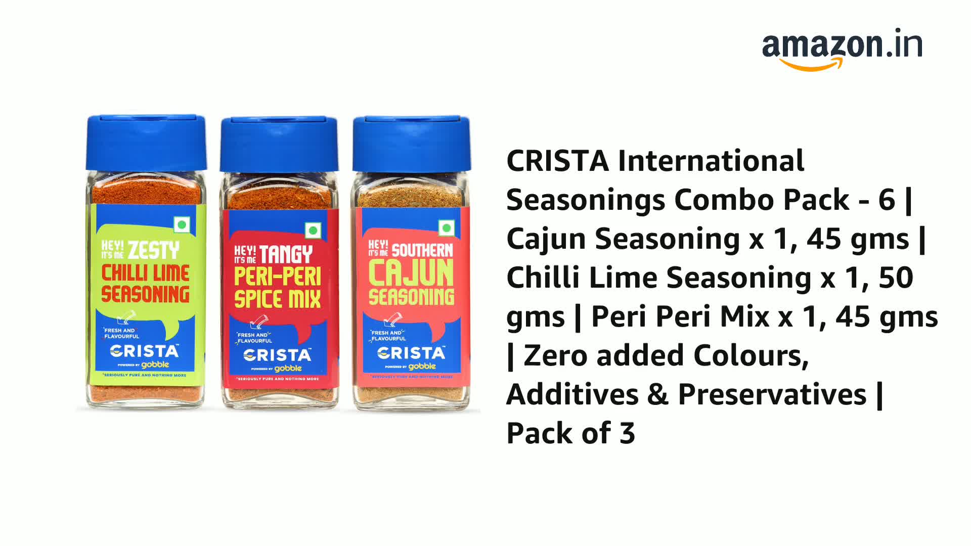 CRISTA International Seasonings Combo Pack - 6 | Cajun Seasoning x 1 45 gms | Chilli Lime Seasoning 50 gms | Peri Peri Mix x 1 45 gms | Zero added Colours Additives & Preservatives | Pack of 3