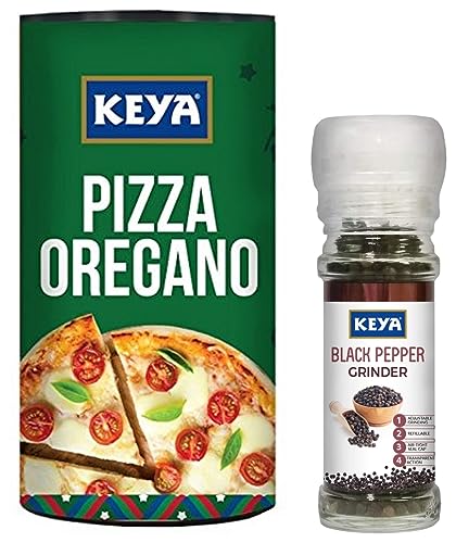 Keya Black Pepper Grinder Black Pepper Mill 50gmKeya brings to you a premium and fresh Black Pepper Grinder which adds a spicy and peppery flavour to your food. It gives an authentic taste to Grilled Chicken Stews Vegetable Curries and Salads.Keya Italian Pizza Oregano | Premium All Natural & Healthy Italian Spice Blend for Pizza Pasta | 80gmInspired from Venice one of the most beautiful cities in the world Keyaâs Italian Pizza Oregano takes you to another world. Luxuriate in the warmth of the Venetian Sun and the gentle breeze as you drift in a gondola along its beautiful canals every time you sprinkle this seasoning on any dish.