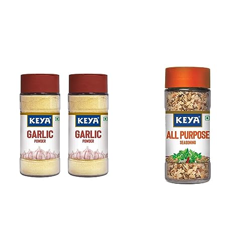Keya Garlic Powder 55gm Ready to Use Instant Garlic Flavour Additive Free No preservatives All Natural and Free Flowing Lehsun Powder Pack 2Garlic powder is very popular in Mediterranean Indian Chinese southeast Asian and Mexican cuisine. Keya.Keya All Purpose Seasoning 60gm l Natural & Healthy Spice Blend for Pizza Pasta| Glass Bottle | Premium Herbs and Spices 60gmSignature blend of herbs and spices that you can sprinkle on any dish especially chicken meat or fish - whether itâs a salad steak or bake.
