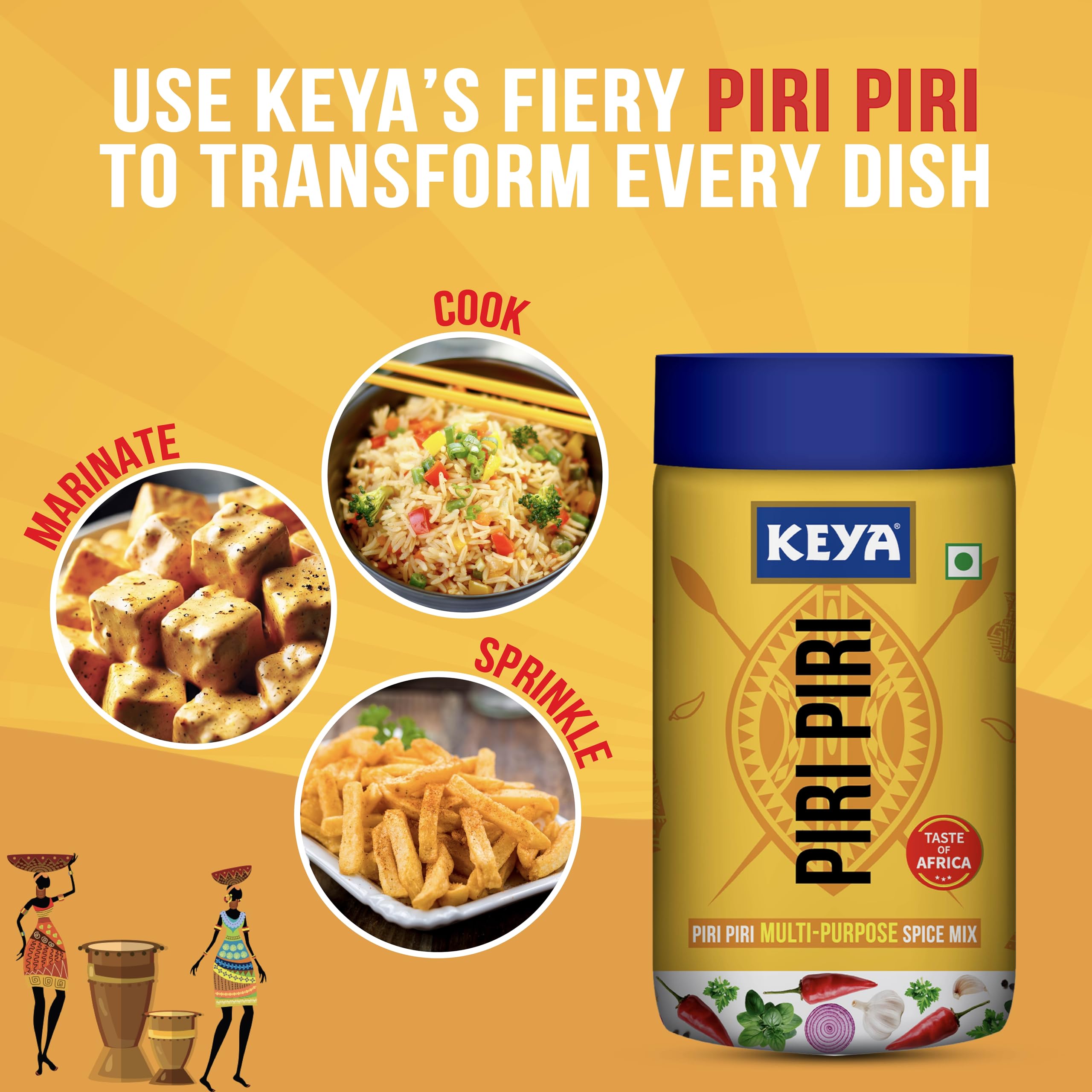 HomeGrocerySpicesMixed SeasoningsOreganoKeya Piri Piri Peri Peri Exotic Spice Mix Multi-purpose Seasoning Zero Artifical Colours No Added MSG Instant Seasoning Mix Marinade Mix, Dip Mix, Sprinkler 100g Pack of 6