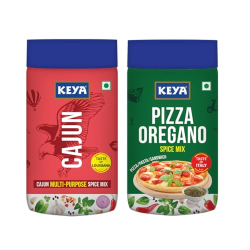 Keya Pizza Oregano Spice Mix 80g | Keya Cajun Spice Mix 95g | Multi-purpose Seasoning | Zero Artifical Colours | No Added MSG | Instant Seasoning Mix |Marinade Mix, Dip Mix, Sprinkler| Perfect for Fries, Sweet Corn, Makhana, Papad, Khichdi | Pack of 2