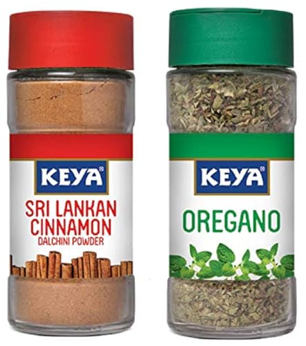 Keya Srilankan Cinnamon Powder | Dalchini Powder | 100% Organic Ceylon Cinnamon | Sourced from Sri Lanka | 50gKeya brings you the purest form of Cinnamon Ceylon Cinnamon directly from its source of Origin Sri Lanka. Naturally grown Cinnamon pods are handpicked ground to fine powder and are packed in easy to use and store bottles. Ceylon Cinnamon is known for its numerous health benefits over other cheaper variants of Cinnamon available in the market.Keya Oregano(Freeze Dried) Pizza/pasta Seasoning Imported Herb Sprinkler 10gmNative to Mediterranean region Oregano is one of the most widely used herbs in the world. It has derived its name from a Greek word which means âmountain-delightâ. Romans & many Europeans learnt the use of Oregano from Greeks and started using it in various foods and medicines.