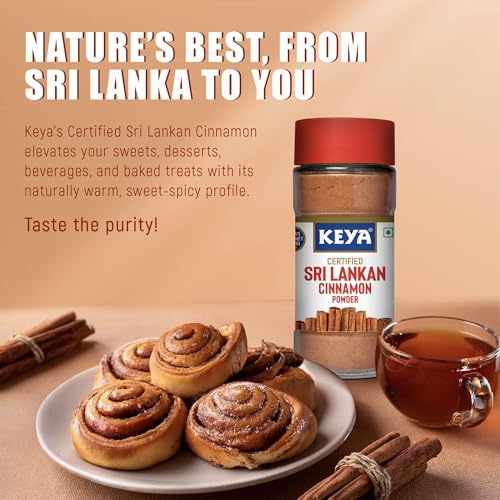 Keya brings you the purest form of Cinnamon Ceylon Cinnamon directly from its source of Origin Sri Lanka. Naturally grown Cinnamon pods are handpicked ground to fine powder and are packed in easy to use and store bottles. Ceylon Cinnamon is known for its numerous health benefits over other cheaper variants of Cinnamon available in the market.