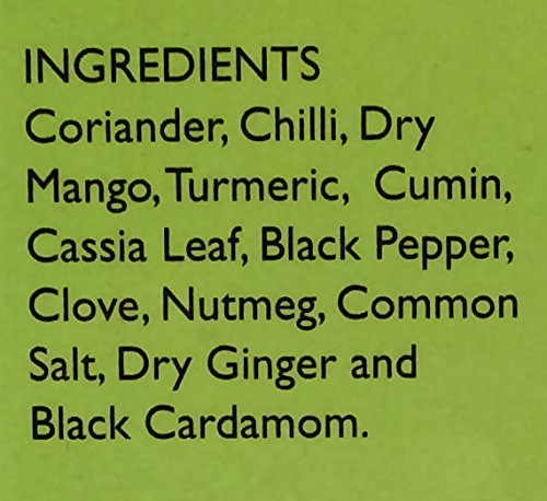 Coriander chilli dry mango turmeric cumin and cassia leaf black pepper clove nutmeg and common salt dry ginger and black cardamom.
