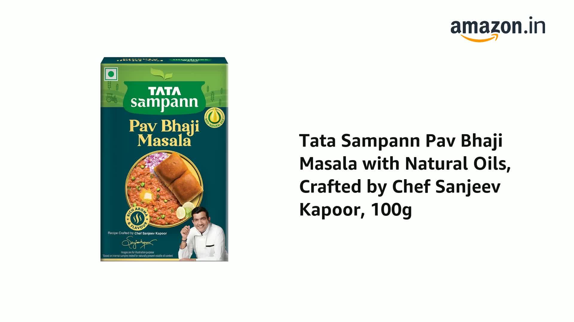 Tata Sampann Pav Bhaji Masala with Natural Oils, 100g, Crafted by Chef Sanjeev Kapoor, With Chef's Exclusive Tip, Rich Aroma & Flavour