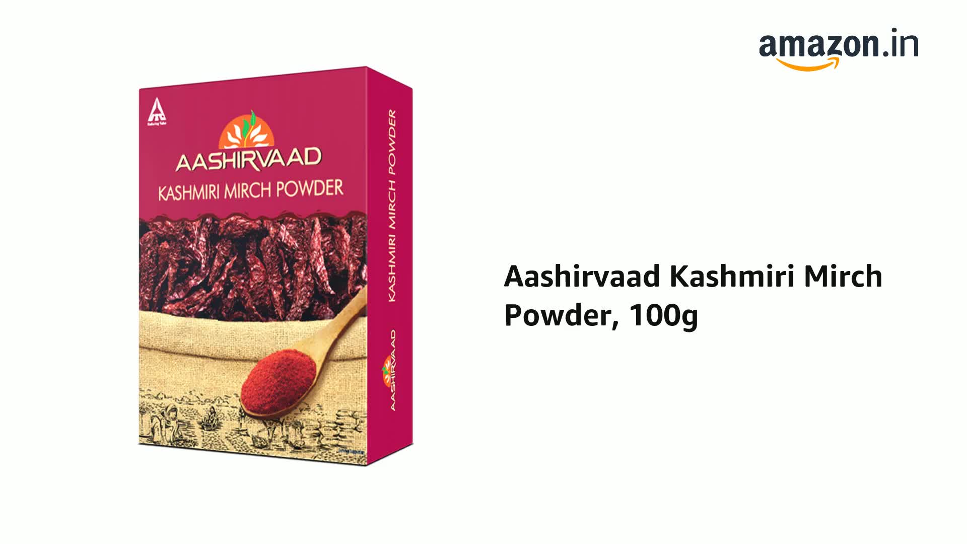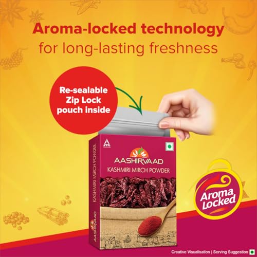 Aashirvaad ensures that only superior quality ingredients reach your kitchen and Aashirvaad Kashmiri Mirch Powder stays true to that word. Aashirvaad Kashmiri Mirch Powder has been made with love in India and it is ensured that only a high-quality product reaches your kitchen. Spice up your dishes with authentic Kashmiri Mirch powder which has been made from the choices stalkless Kashmiri chillies. The chillies have been carefully selected by Aashirvaad experts. The handpicked crisp Kashmiri chillies are then traditionally sun-dried and thoroughly cleaned. This ensures that the chilli powder is perfectly balanced in colour and taste. The automated packaging and processing with zero human intervention also ensure purity in every pack. With no added flavours and colours Aashirvaad Kashmiri Mirch Powder is quite potent even in a small quantity. So just add a pinch of this Kashmiri Mirch powder to bring alive aroma flavour and vibrant colour of your dish!