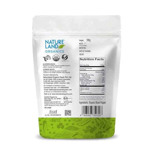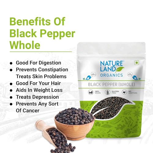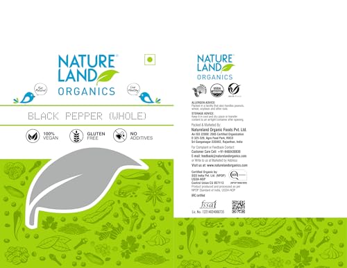 Black pepper (piper nigrum)stimulates the taste buds in such a way that an alert is sent to the stomach to increase hydrochloric acid secretion thereby improving digestion. Natureland's organic black pepper has travelled a long way from wild lush green forests of western Ghats Karnataka produced from the still-green unripe organic drupes of the pepper plant boiled and sun dried graded and handpicked to deliver the best taste and aroma. We assure you that its purity and naturalness will take you on journey of lush green organic farms unfolding the taste of health and nutrition that lingers for long savor the taste feel the aroma honor the purity and discover the nature in you.