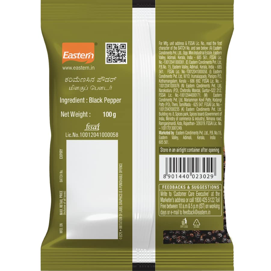 Size:Pack of 2Eastern Black Pepper Powder is also called by names such as peppercorn powder or black pepper powder. It is mostly used in curries dals meat preparations vegetables and even in tea. It has a distinct aroma and a pungent taste. It is also one of the components of famous garam masala.