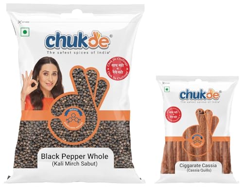 Chukde Kaali Mirch Sabut Black Peppercorns Whole Spices 100gChukde Kaali Mirch Sabut Black Peppercorns Whole Spices 100gChukde Dalchini Shrilankan Cinnamon Ciggarate Sticks Quills Whole Spices 50gChukde Dalchini Shrilankan Cinnamon Ciggarate Sticks Quills Whole Spices 50g