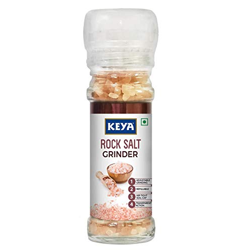 Keya presents fresh Black Pepper Grinder that adds peppery flavour to your food. Air tight adjustable and moisture resistant grinding cap Refillable bottle. Keya presents Black Salt Grinder that adds exquisite taste to your food. Air tight adjustable and moisture resistant grinding cap. Refillable bottle. Gives authentic taste to Chaats Chutneys Salads Fruits Grilled Chicken Pasta. Keya presents Rock Salt Black Pepper Grinder that adds exquisite taste to your food. Air tight adjustable and moisture resistant grinding cap. Refillable bottle. Storage Conditions 1. Store in a cool and dry place 2. Secure lid firmly after use