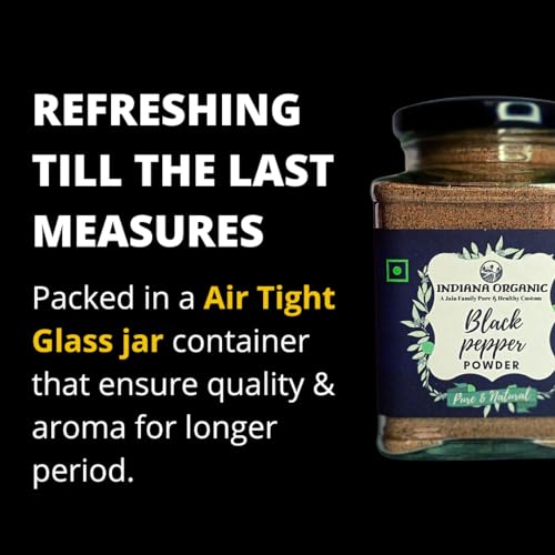 Indiana Organic Black Pepper Powder, Kali Mirch Powder, Piper nigrum, 150 gram | Chemical Free & Pesticides Free | Unadulterated | Enhances Taste