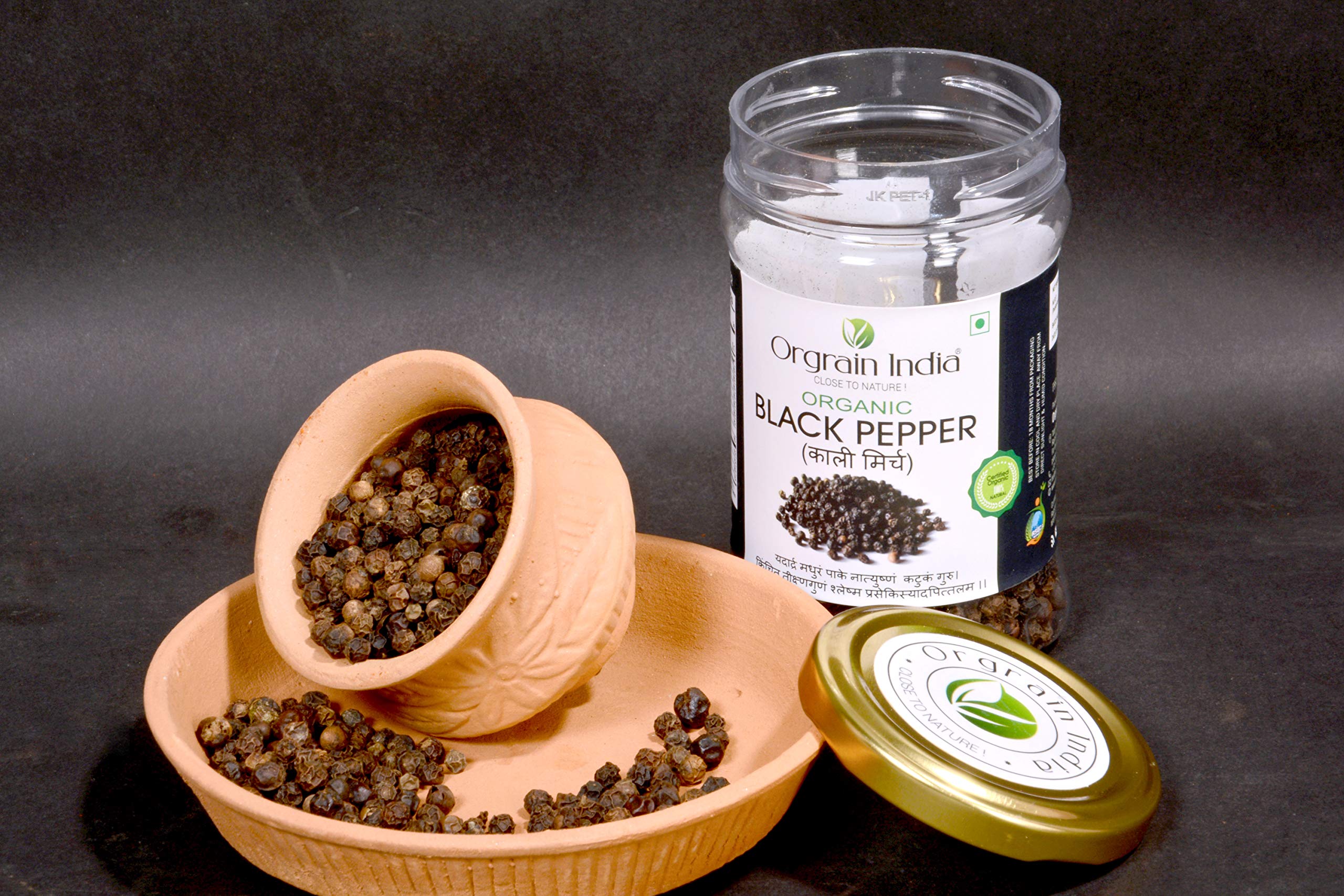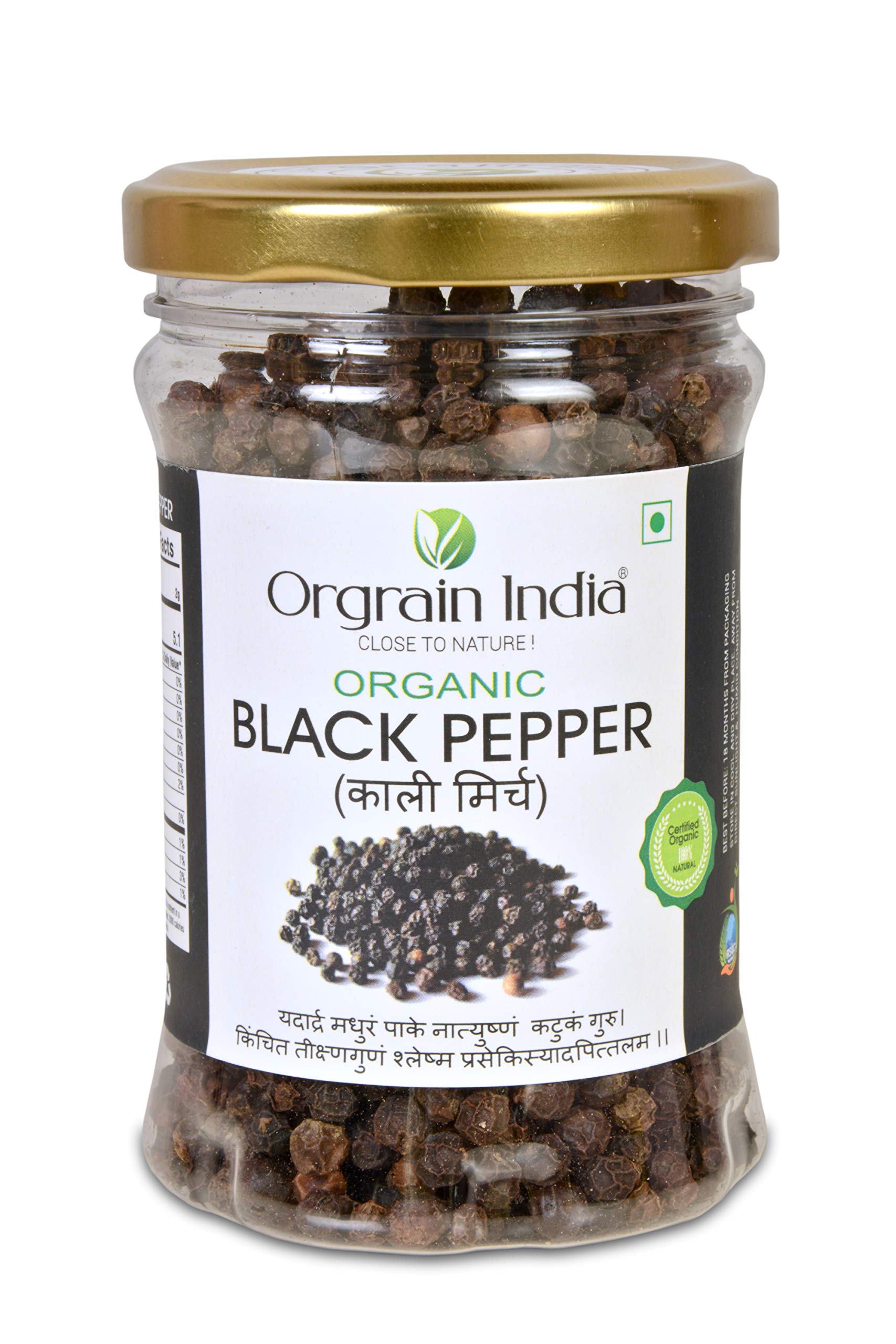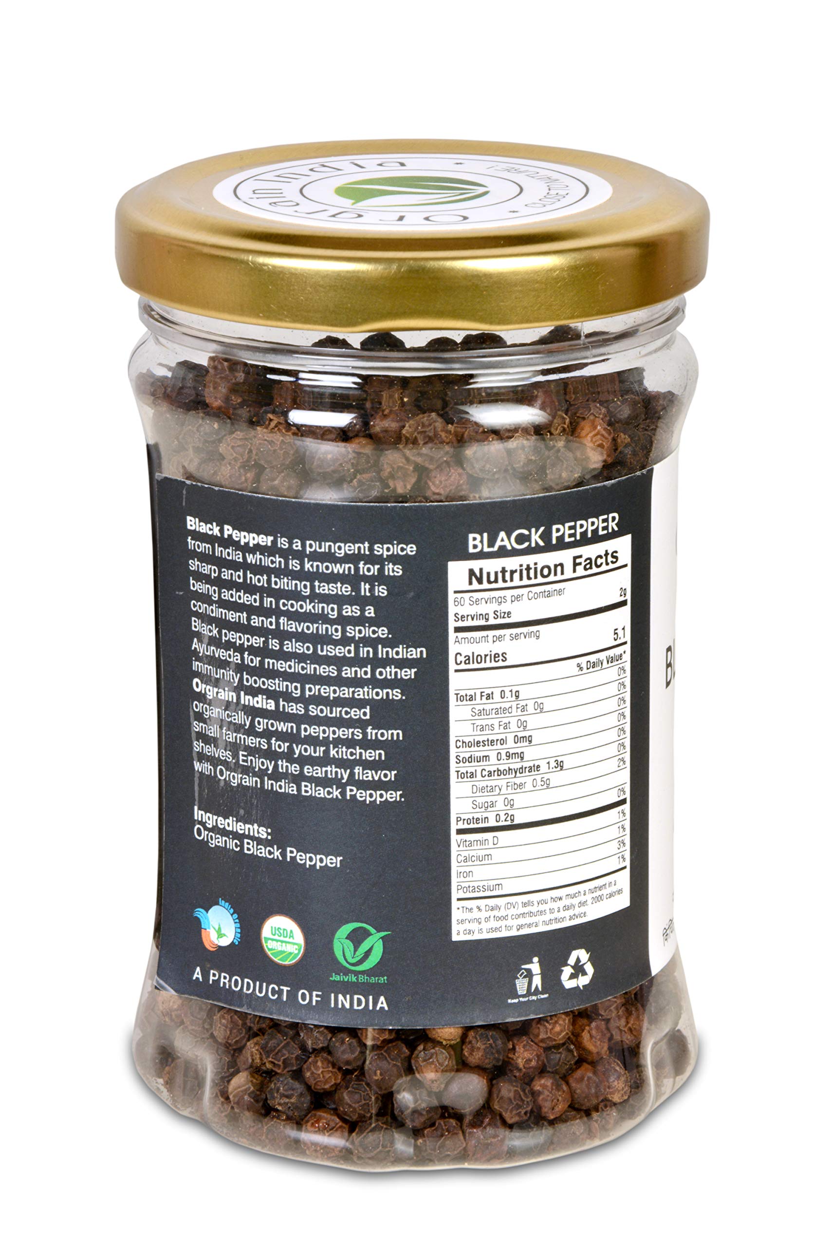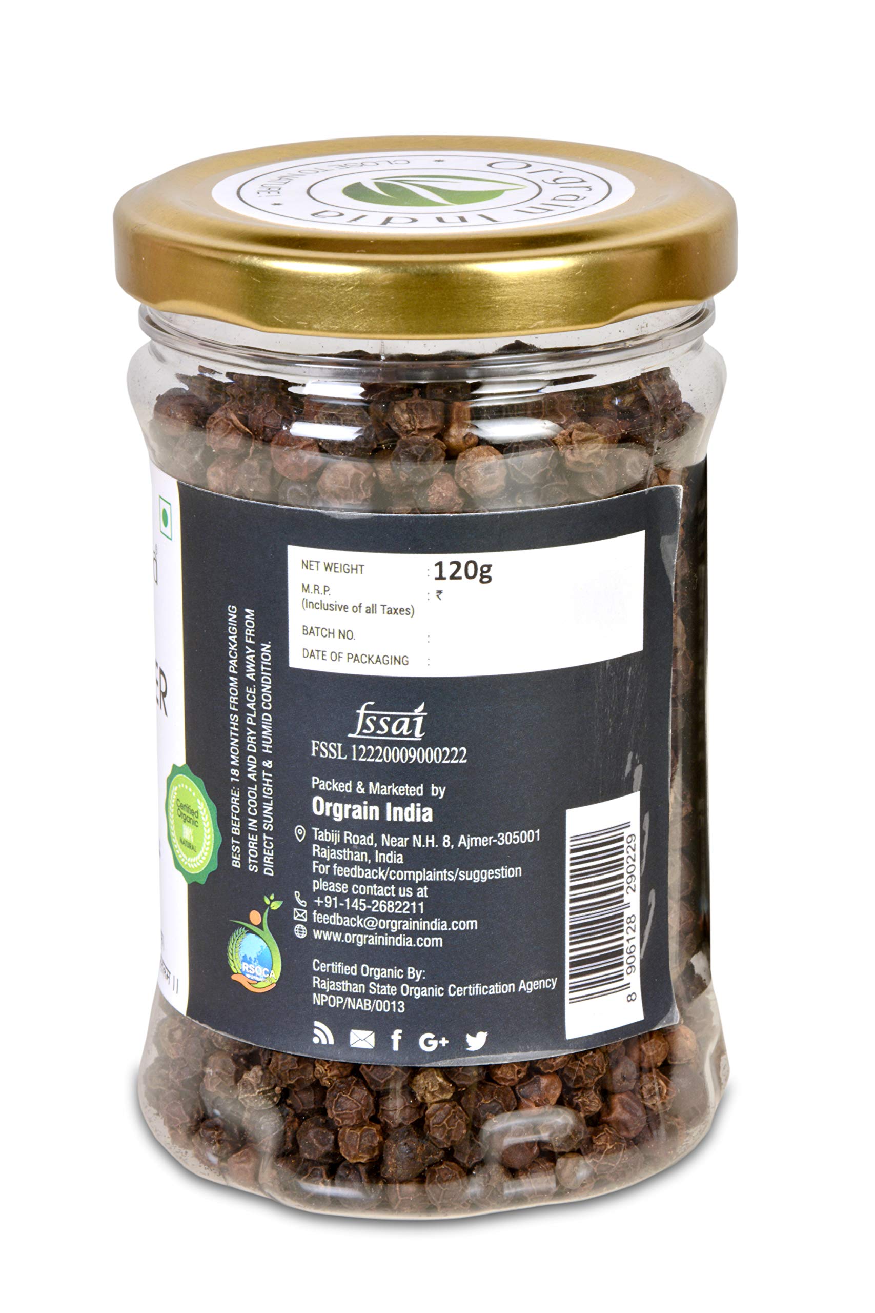 Orgrain India Certified Organic Black Pepper Whole 120g | Kali Mirch | Kerala Origin | Premium Grade | Freshly Packed | Spices |