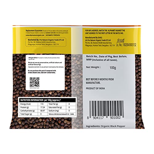 Pro Nature 100% Organic Black Pepper (Whole), 100 gram