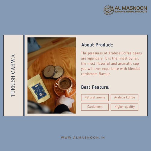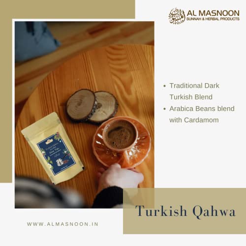 AL MASNOON Turkish Coffee/Turkish Qahwa/Made with Dark Roasted Ground Coffee & Cardamom 100g