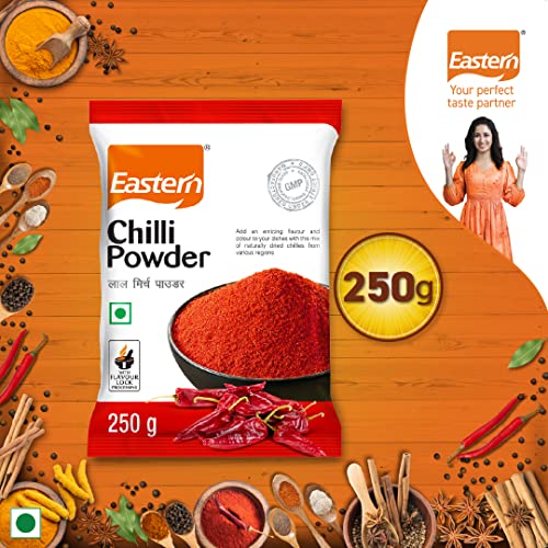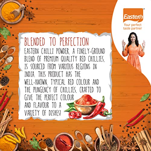 Eastern Chili powder is a blend of ground dried fruit of cayenne or red chili peppers and added spices.